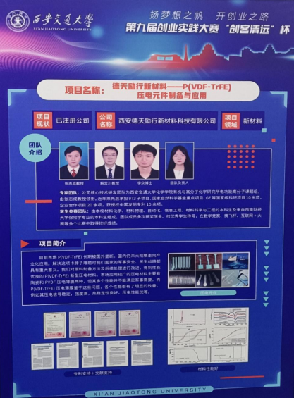 张志成教授、解云川教授指导,材料化学专业本科81班高娜同学负责、博士生李众参与的项目“德天励行新材料——P(VDF-TrFE)压电元件制备与应用”喜获银奖。