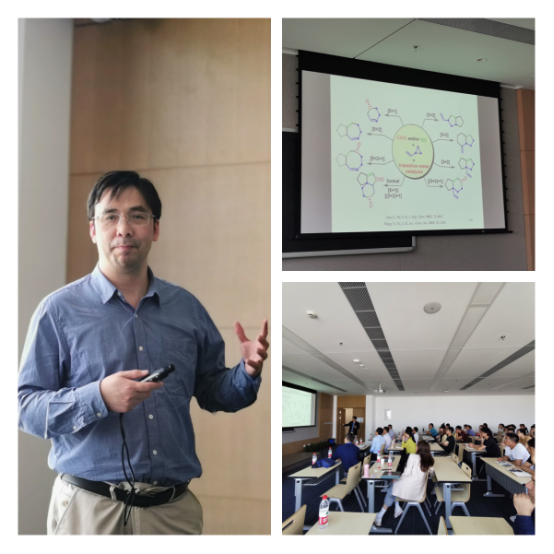 有机与高分子研究所邀请,首次访问创新港化学研究平台,并于19号楼4110教室展开主题为“成环反应的发明与应用”的学术报告。此次报告会由化学学院副院长段新华教授主持。