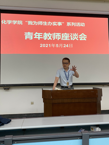 段新华副院长做了题为“如何加强人才培养质量”的报告。他首先解读了中共中央国务院发布的《关于深化教师队伍建设改革的意见》和《深化新时代教育评价改革总体方案》,着重强调了教授承担本科生教学最低课时的要求,确保教学质量,对未达到要求的给予年度或聘期考核不合格处理的条款。随后他强调了以下四个方面:一是全面提高教师教书育人能力。建议年轻教师主动大量的听课观摩,尤其是教学名师的课程,从中吸取很多宝贵的教学经验和课堂授课技巧,汲取每位教师的优点,并把获得的先进教学方法融会到自己的教学中去。二是深刻认识建设高水平本科教育的重要意义。他说学院年轻教师对人才培养的中心地位和本科教学的基础地位还不够巩固,部分教师精力和资源投入仍不到位,教育理念仍相对滞后。他说我们青年教师必须主动适应国家战略发展新需求和世界高等教育发展新趋势,牢牢抓住全面提高人才培养能力这个核心点,把对学生的教育教学放在人才培养的核心地位和基础地位,形成高水平的化学人才培养体系,开创化学本科教育新局面。三是加强教育教学基本素质和能力。主要加强选择教育教学内容和方法、设计教学方案、掌握运用教育学心理学知识的能力、语言表达能力、管理学生的能力以及运用现代教育技术的能力等等。尤其是拟任教学科的专业知识与有效教学能力。四是发挥教材和课程体系育人功能。他鼓励和支持专业造诣高、教学经验丰富的青年专家学者积极参与教材编写和课程体系建设,提高教材编写质量,健全、优化化学课程体系。