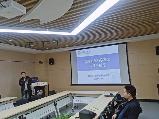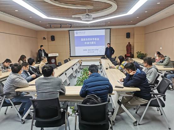 会议在张彦峰副院长的致辞和简短介绍中开场,科研院何会老师从专家如何评审基金的角度解读如何撰写国家自然科学基金申请书,他对基金申请书的三大部分:表格信息、立项依据与研究内容、研究基础与工作条件的写法做了详细的解读,对基金撰写中的12个细则:题目、摘要、项目的立项依据、研究内容、研究目标、拟解决的关键科学问题、研究方案、可行性分析、本项目的特色与创新之处、年度工作计划及预期研究结果、研究基础、工作条件做了逐一的讲解,分享各部分撰写的技巧,为学院教师2022年的基金申报工作提供了很大帮助。