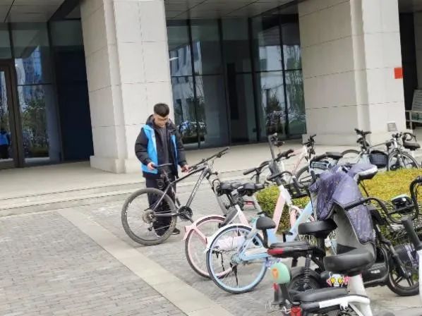 负责整理楼前自行车的志愿者表示:“楼下的自行车摆放杂乱,困扰着同学们的正常出行,我们也希望通过这一次志愿活动号召大家在停放车辆的时候遵守规则,留出人员通行的道路。”志愿者们说干就干,一辆辆歪七扭八的共享单车被“矫正”身姿,然后形成了一幅井然有序的画面。这不仅给需要停放单车和摩托车的人员留出了充足的停车空间,也给师生们留出了更多通行的道路。