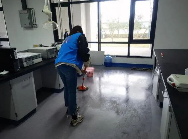 化学测试中心,由于测试人流量大,会残留一些垃圾,桌面上也容易积灰。志愿者同学们分工明确,有人负责擦桌子,有人负责扫地,有人负责拖地……在大家的共同努力下,测试房又展现出最初那干净整洁的模样。