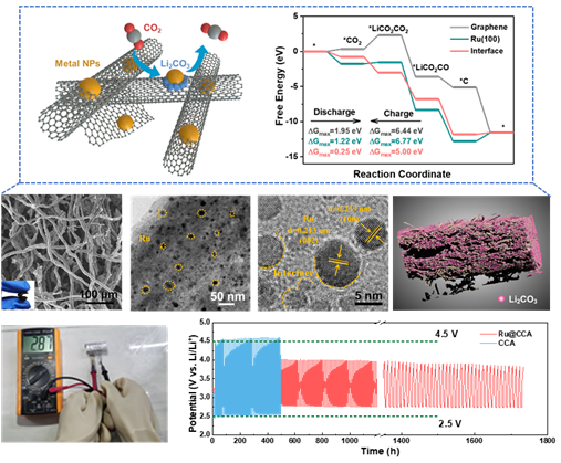通过在三维自支撑纤维素碳气凝胶表面合理构筑金属/碳界面实现高性能Li-CO2电池