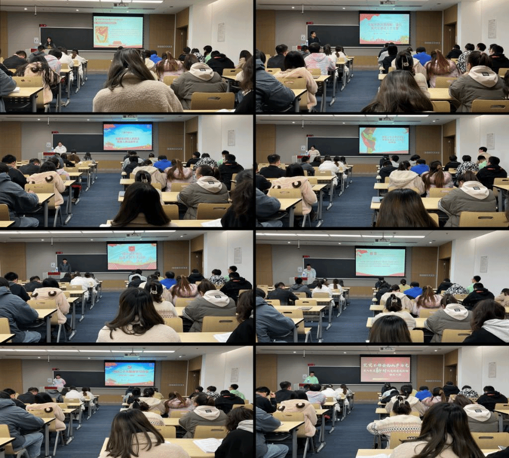 马列读书社的罗思婷同学讲到了在中国抗疫中彰显出的我国构建人类命运共同体的大国担当;山东大学习近平新时代中国特色社会主义思想青年学习会的郭志娇同学谈到党的二十大报告中关于青年的重要论述,从我们肩负的时代重任出发,报告内容振奋人心;最后南开大学宣讲团的吴铸辉同学说道我们要始终坚持走和平发展道路的中国式现代化。整场报告精彩纷呈,全体党员同志收获颇丰。