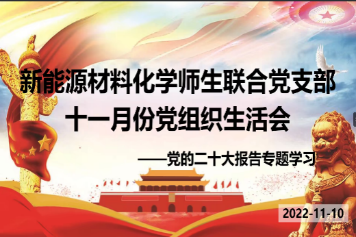 新能源材料化学师生联合支部召开以“党的二十大专题学习”为主题的11月组织生活会,为了能够更好的让同志们参与到学习中,支部采取线上线下的方式来让更多的同志参与到学习当中。