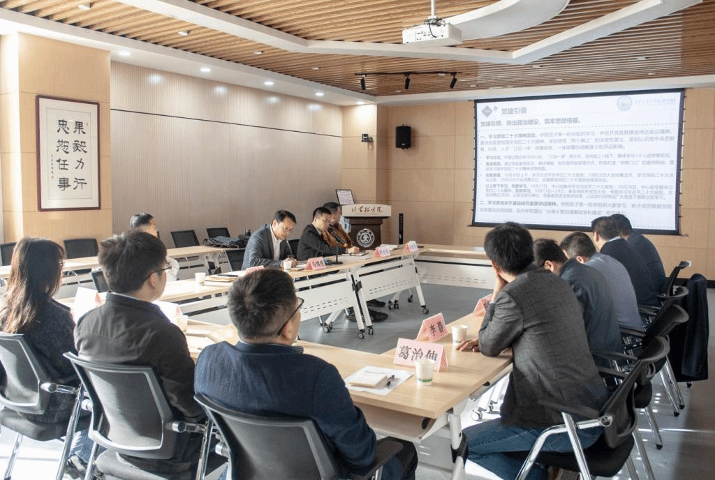 张志成汇报了学院班子研究贯彻落实情况。学院通过理论学习中心组、“三会一课”等方式,应用线上+线下、集体学习+个人自学等形式,深入学习相关精神。张志成讲到,学院要全面贯彻落实党的二十大精神,深刻领悟“两个确立”的决定性意义,深刻认识党中央把教育、科技、人才“三位一体”统筹安排、一体部署的战略意义和深远影响。