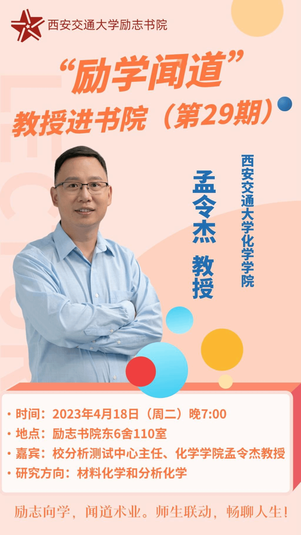 联合开展第29期“励学闻道”教授进书院活动,邀请校分析测试中心主任、色情短视频