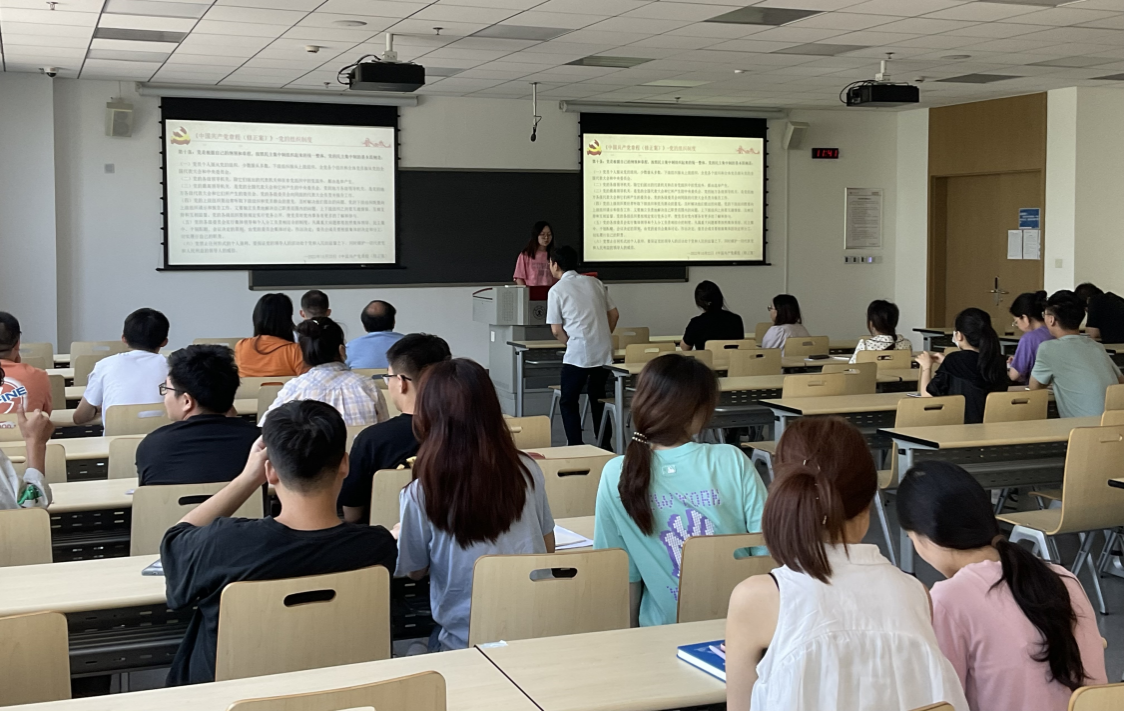 22级硕士新生党支部和新能源材料化学师生联合党支部、有机功能分子合成师生联合党支部于泓润楼19-2097室召开了六月党组织生活会。会议由新能源党支部书记杨晓龙老师主持,三个支部全体党员同志参与了此次组织生活会。此次会议为深入学习贯彻党的二十大精神,营造浓厚的学习氛围,丁书江院长以“加快实现高水平科技自立自强”为题,为师生党员同志讲授了一堂生动精彩、思想深刻的专题党课。