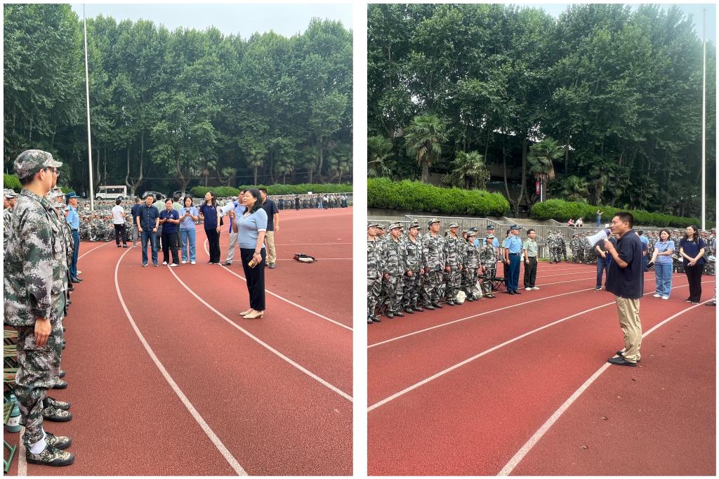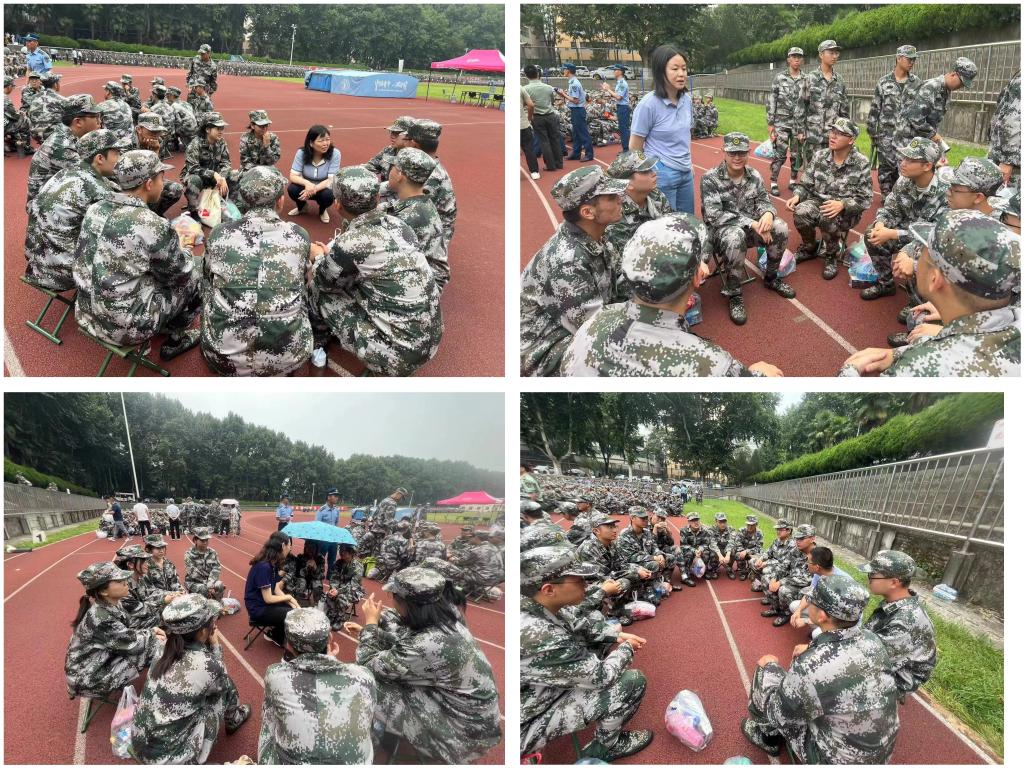 副院长李银环、副院长张彦峰、各系部主任(副主任)代表、2023级新生班主任等一行来到兴庆校区军训场对2023级参训新以亲切慰问并送上清凉慰问品。