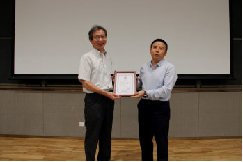 张志成书记向侯召民教授颁发新港报告纪念证书并赠送纪念品。
