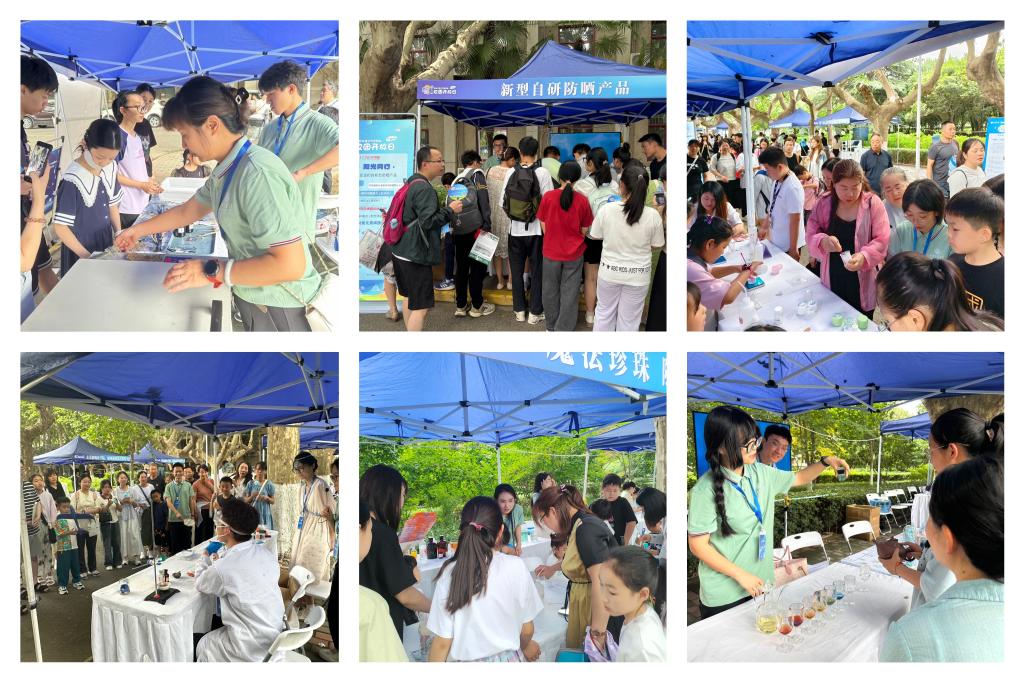在科教互动体验区,冰冰凉凉的夏日冰沙霜、能绘制美丽蓝图的“蓝晒”法、奇妙的化学“许愿仙壶”、自研防晒霜……学院老师们精心策划的路演项目获得了学生与家长们的一致好评。