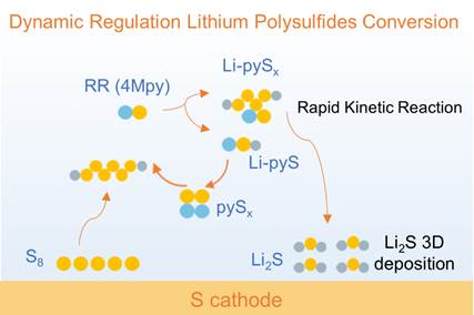 郗凯教授团队提出了一种氧化还原调节器型(RR)的电解液添加剂的策略,通过在电解液中加入4-巯基吡啶(4Mpy)动态调节多硫化物转化路径。这种RR型添加剂不仅减缓了多硫化物的穿梭,也减缓了添加剂自身的穿梭问题。研究发现,4Mpy添加剂的氧化还原转化机制不同于传统电解液,4Mpy能够形成吡啶硫醇锂(Li-pyS),在充电/放电循环过程中可逆参与多硫化物转化,动态调节多硫化物向硫化锂的转化路径,显著改善氧化还原过程并促进Li2S的三维形成,从而增强反应动力学。因此,具有4Mpy添加剂的锂硫电池在10.88 mg cm-2的高硫负载下放电容量达到10.05 mAh cm-2。这项研究不仅提出了一种解决多硫化物缓慢转化动力学的方法,还为其他同类型溶解-沉积型金属电池的电解液设计提供了宝贵的见解。此工作以“有机硫电解液添加剂在锂硫电池中动态调节多硫化物转化路径”(Dynamically Regulating Polysulfide Degradation via Organic Sulfur Electrolyte Additives in Lithium-Sulfur Batteries)为题发表在《先进能源材料》(Advanced Energy Materials)上。博士生邓腾是本文的第一作者。参与本工作的还有色情短视频