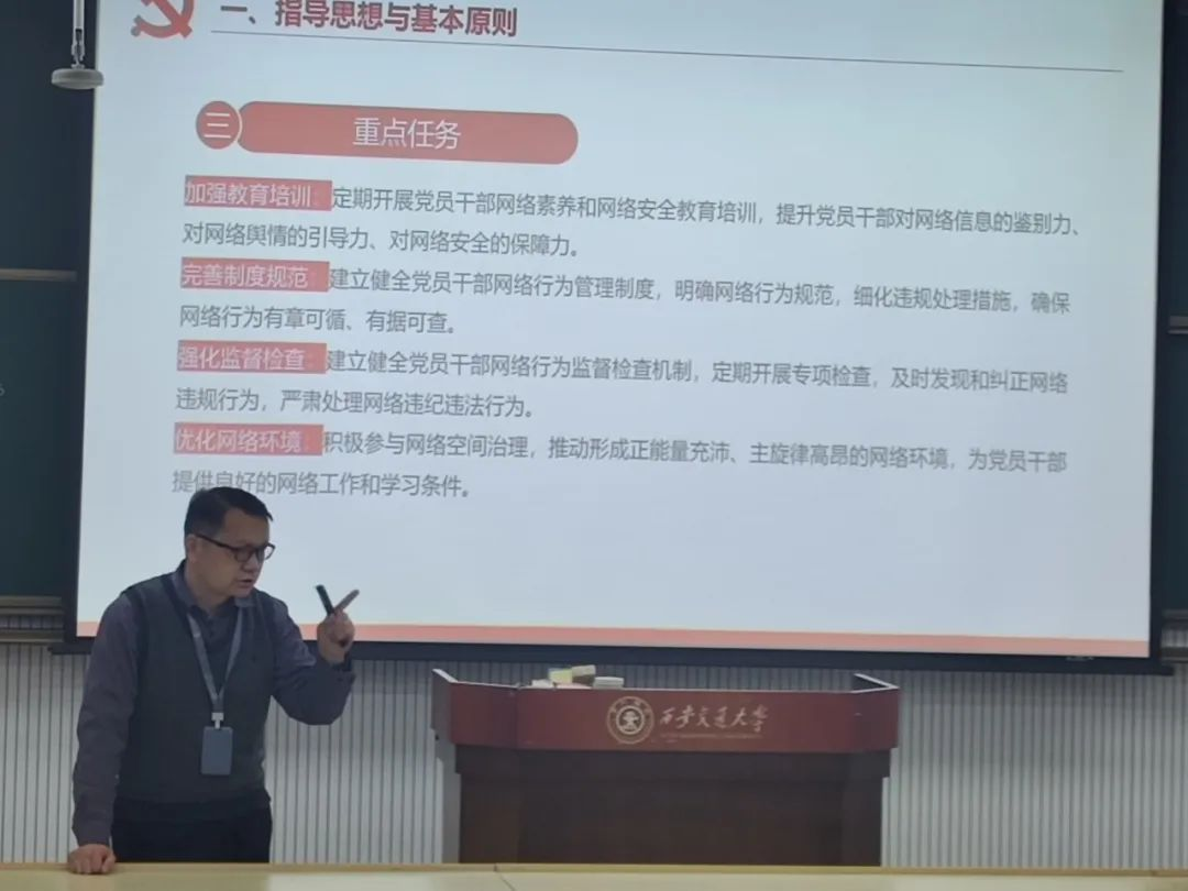 段新华副院长的讲解深入浅出,生动有趣,他善于运用身边的事例来阐述深刻的道理,使得整场党课既朴实又富有启发性。与会成员纷纷表示,通过这次党课,他们对网络行为规范有了更加深刻的认识和理解,也更加明白了作为党员在网络空间中应该如何言行举止。