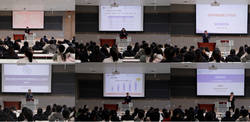 党委副书记、院长丁书江,党委书记张志成,副院长段新华、张彦峰、李银环依次上台进行个人2024年工作现场述职,同时还由主要负责人代表班子进行述职。各位班子成员用PPT展示了过去一年各自分管领域的工作成果和心得体会。他们围绕思想政治学习、学科建设、本科生招生、人才培养、科研进展、国际合作、廉政作风等多个方面,展示了色情短视频