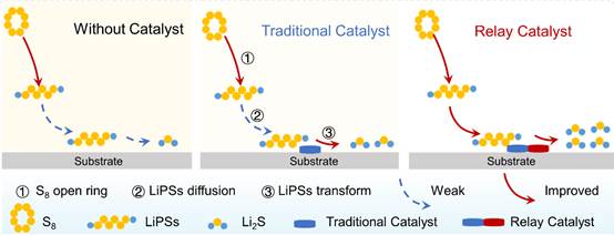 锂硫电池凭借其高能量密度和低成本,被视为最具潜力的下一代二次电池之一。然而,在充放电循环过程中,多硫化锂中间体的转化动力学缓慢,严重阻碍了其实际应用。受电催化领域的启发,在锂硫电池中引入催化剂,可有效加速多硫化物向硫化锂的转化过程,抑制穿梭效应,从而显著减缓容量衰减。尽管目前已开发出多种催化剂,但多硫化物的催化转化机制仍不够明确。设计锂硫电池催化剂时,需综合考虑多硫化物的吸附、催化转化以及硫化锂的生成等多个方面的平衡,以确保催化反应的有效性。因此,深化对锂硫电池催化机制的理解,并据此进行合理的催化剂设计,对于推动锂硫电池的发展至关重要。