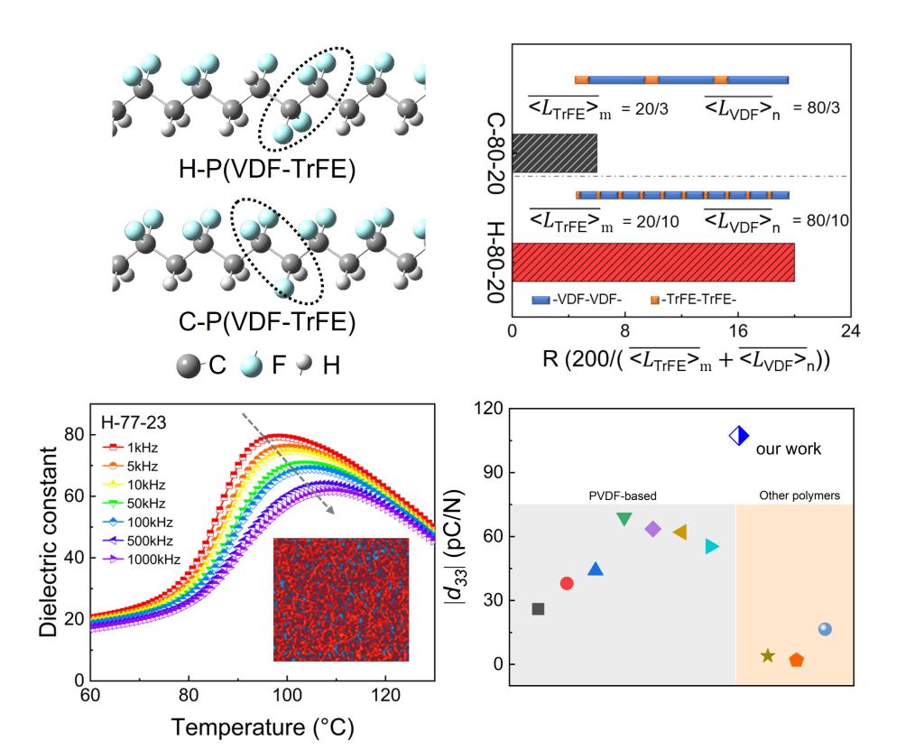 该研究成果以“通过调节P(VDF-TrFE)的序列和纳米畴结构实现超高的压电系数”(Ultrahigh Piezoelectric Coefficients Achieved by Tailoring the Sequence and Nano-domain Structure of P(VDF-TrFE)为题发表在《先进材料》 (Advanced Materials)上,色情短视频