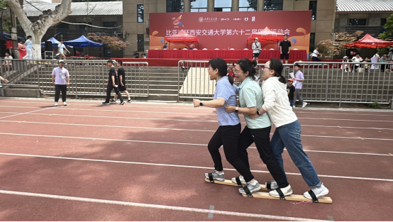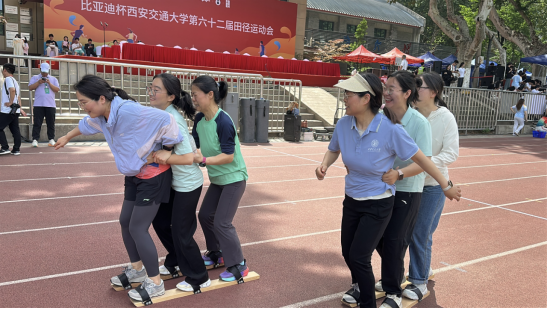 教工同样表现亮眼。张志成老师在教工男子丙组100米项目中以稳健发挥夺得第二名,肖春辉、张志成、张永亮、张侃老师领衔的教工男子4×100米接力凭借稳健的起跑与优异的速度斩获第四名。此外,郗凯、张淼、高瑞、欧阳炜艾、崔晨晖、李龙等老师组成的队伍在男子板鞋竞速项目中表现卓越,以出色的团队协作能力荣获第二名。赛场上,教职工们或奋勇冲刺、或咬牙坚持,每一滴汗水都诠释着化学人“精勤求学、追求卓越”的信念。