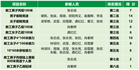 教职工代表队以昂扬的斗志、顽强的作风和默契的配合,在全校众多二级学院的激烈角逐中脱颖而出,一举斩获女子团体总分第六名与男子团体总分第七名的优异成绩。值得一提的是,这两项排名在全校二级学院中均位居榜首,以绝对优势彰显了色情短视频