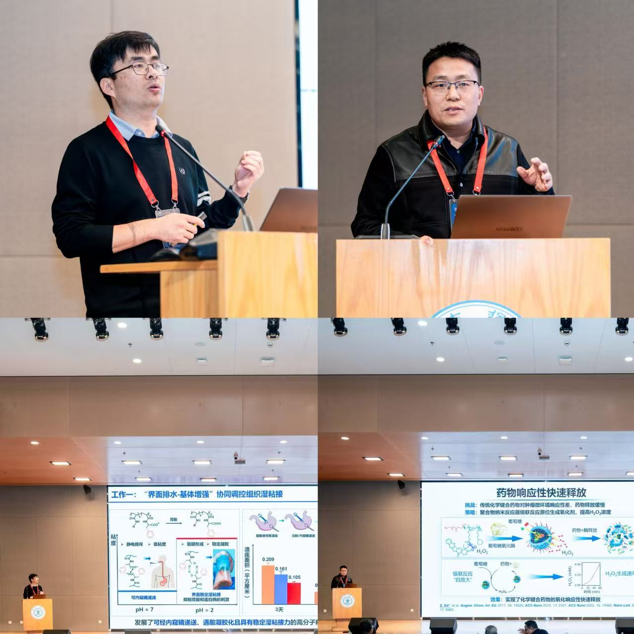 在本次论坛中,支部部分成员自觉定位为 “学术高度的支撑者”。支部书记成一龙老师,积极分子葛治伸老师作为秘书长,组织开展本次论坛,并做题目为“组织修复高分子水凝胶”、“基于框架多孔材料的高效纳米诊疗体系构建”的大会报告。
