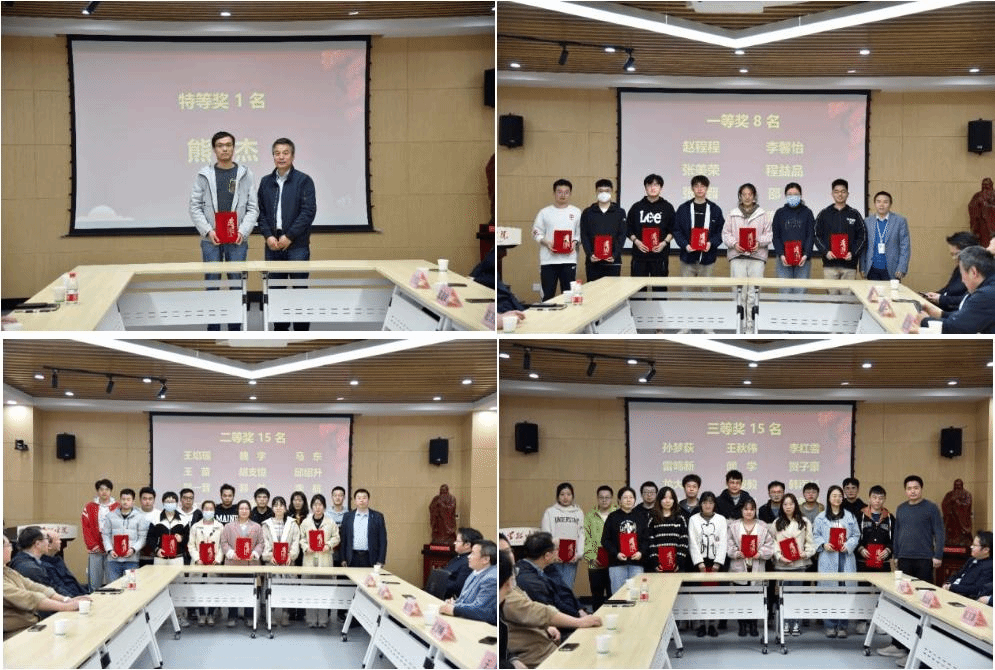 电功能材料与器件特等奖学金,赵程程等8名同学获一等奖,王焰瑶等15名同学获二等奖,孙梦荻等15名同学获三等奖。赵卫滨秘书长为获得特等奖学金的熊杰同学颁奖,学院其他领导与课题组老师为其他获奖同学颁奖并表示祝贺。