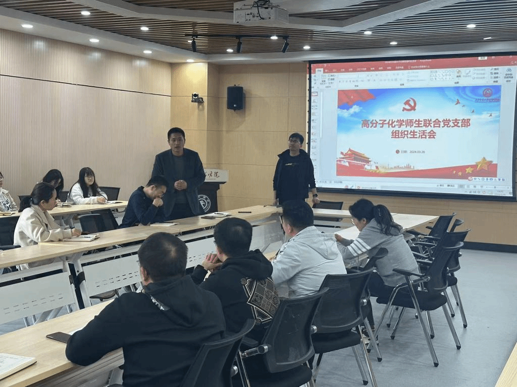 高分子化学师生联合党支部于19-2105教室召开三月党组织生活会。会议由党支部副书记申锴翔主持。